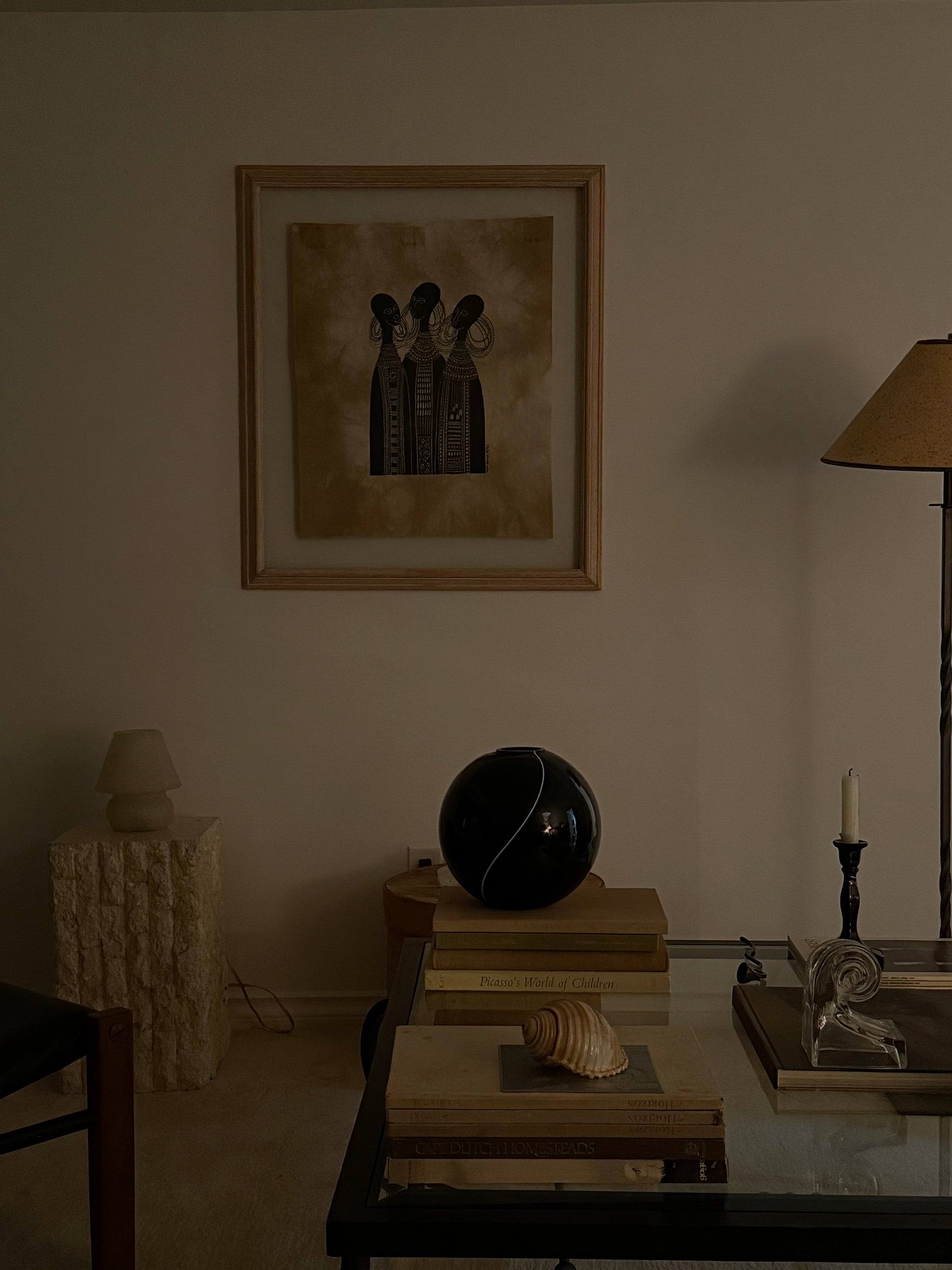 This unique 1983 piece of East African batik art by Swedish artist Heidi Lange is titled “3 Maasai Girls” or “Maasai Women professionally framed.” I’ve been hoarding it, but I’m now ready to find it a new home! I absolutely love it.