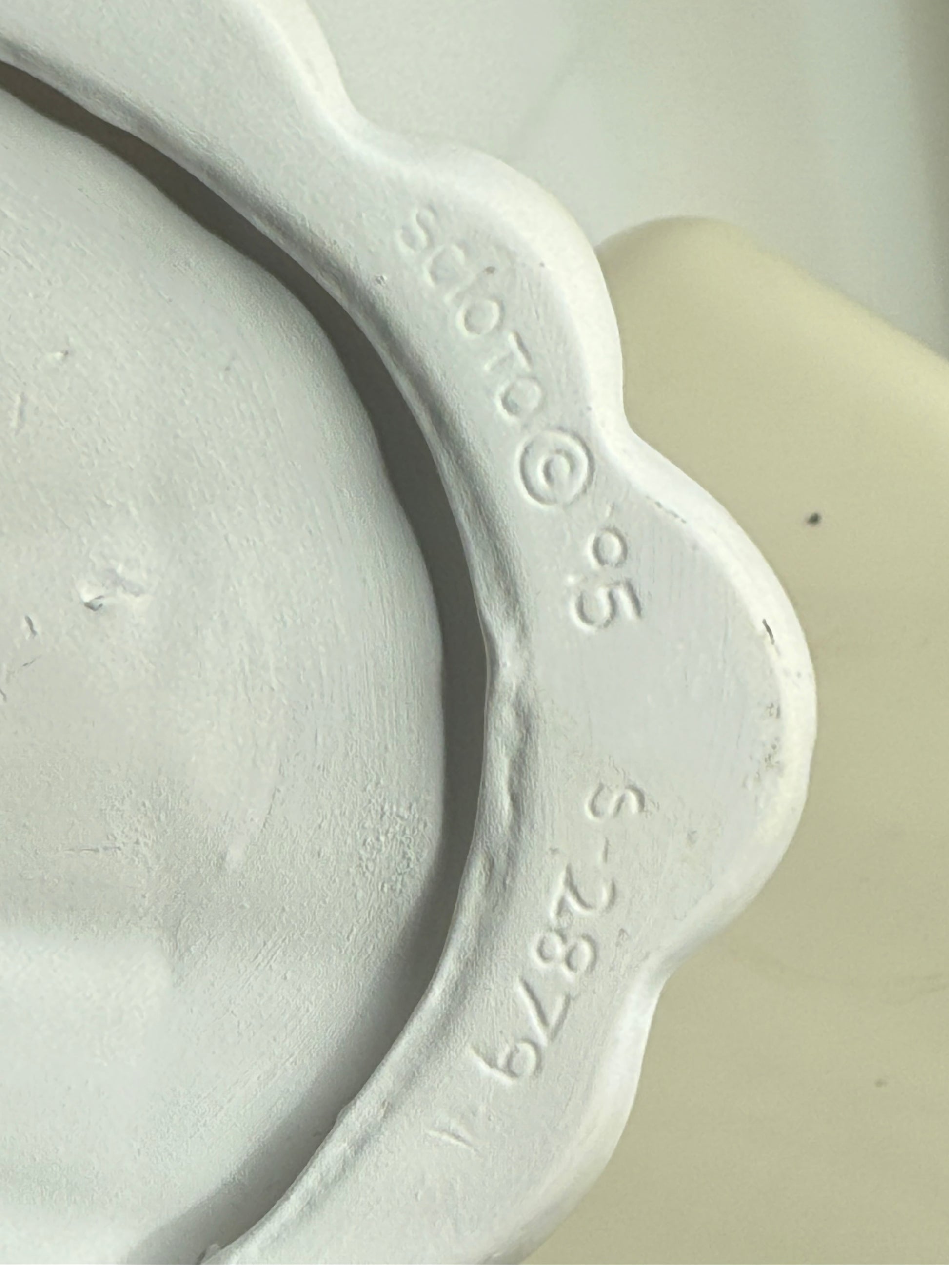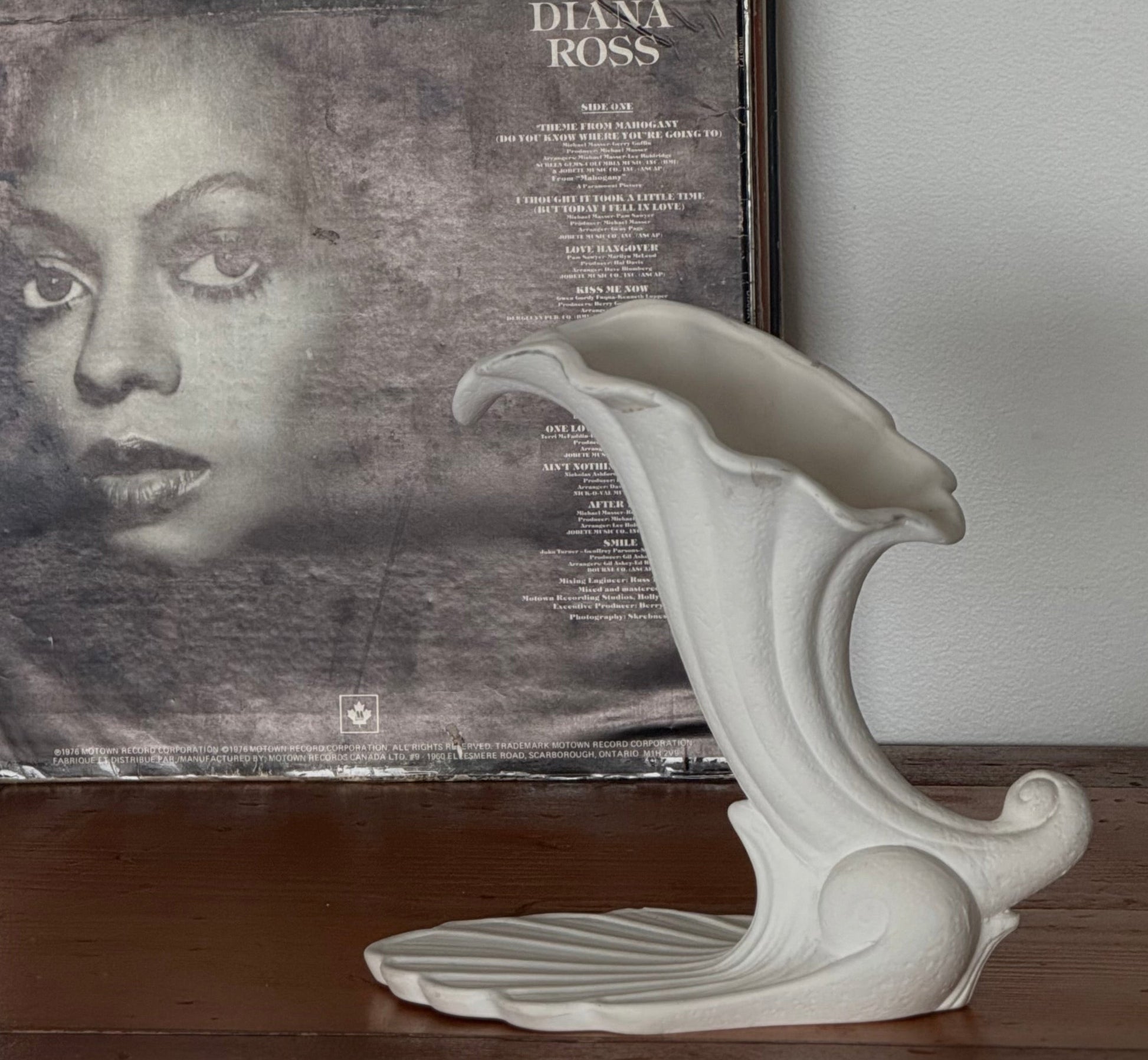 1995 signed cornucopia vase in white ceramic and shell shaped base.