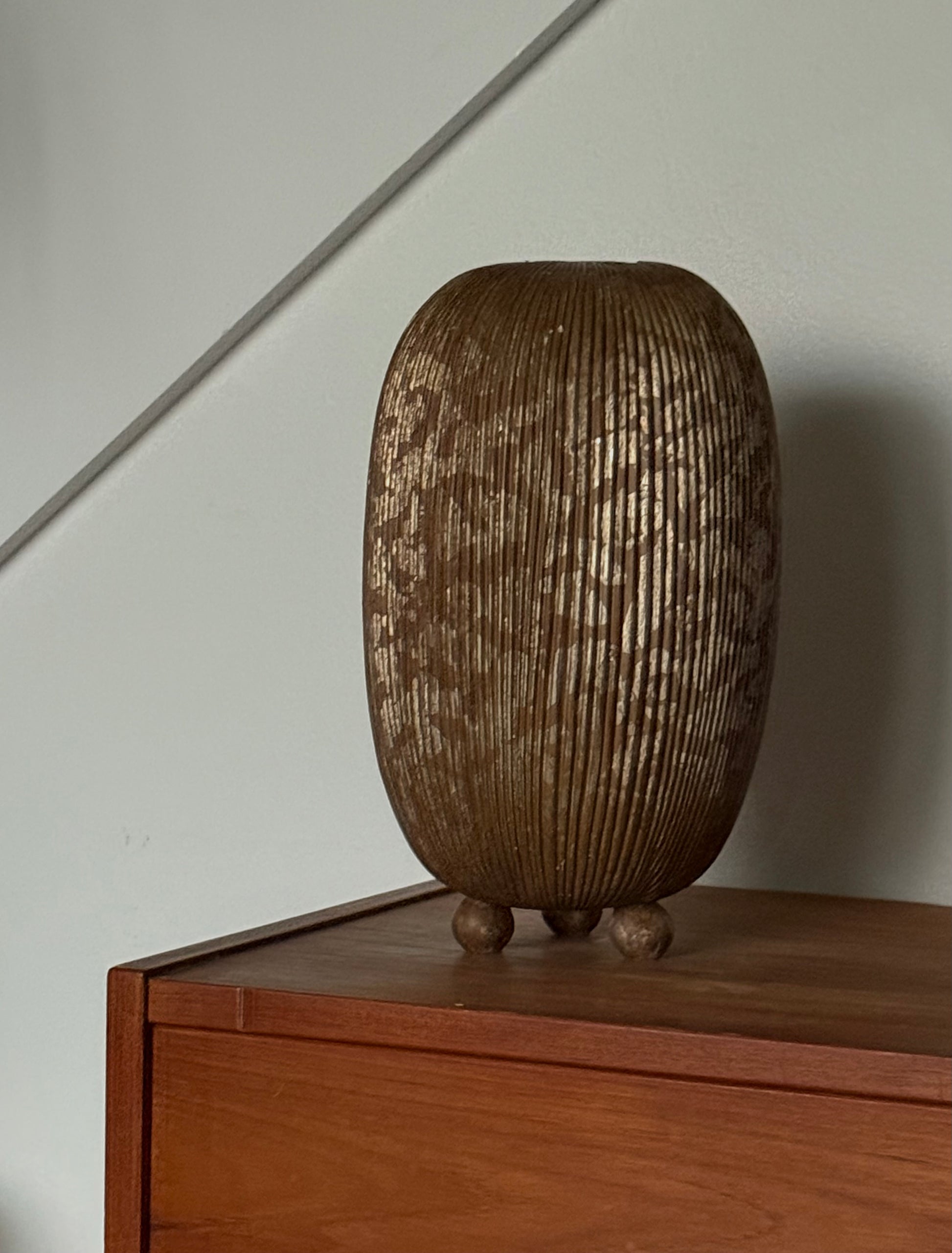 We love the colours, shape, and design of this vase. It is from 2008, not quite vintage; however, it is a discontinued high-quality second-hand piece that we could not pass on. Those ball feet get us every time.