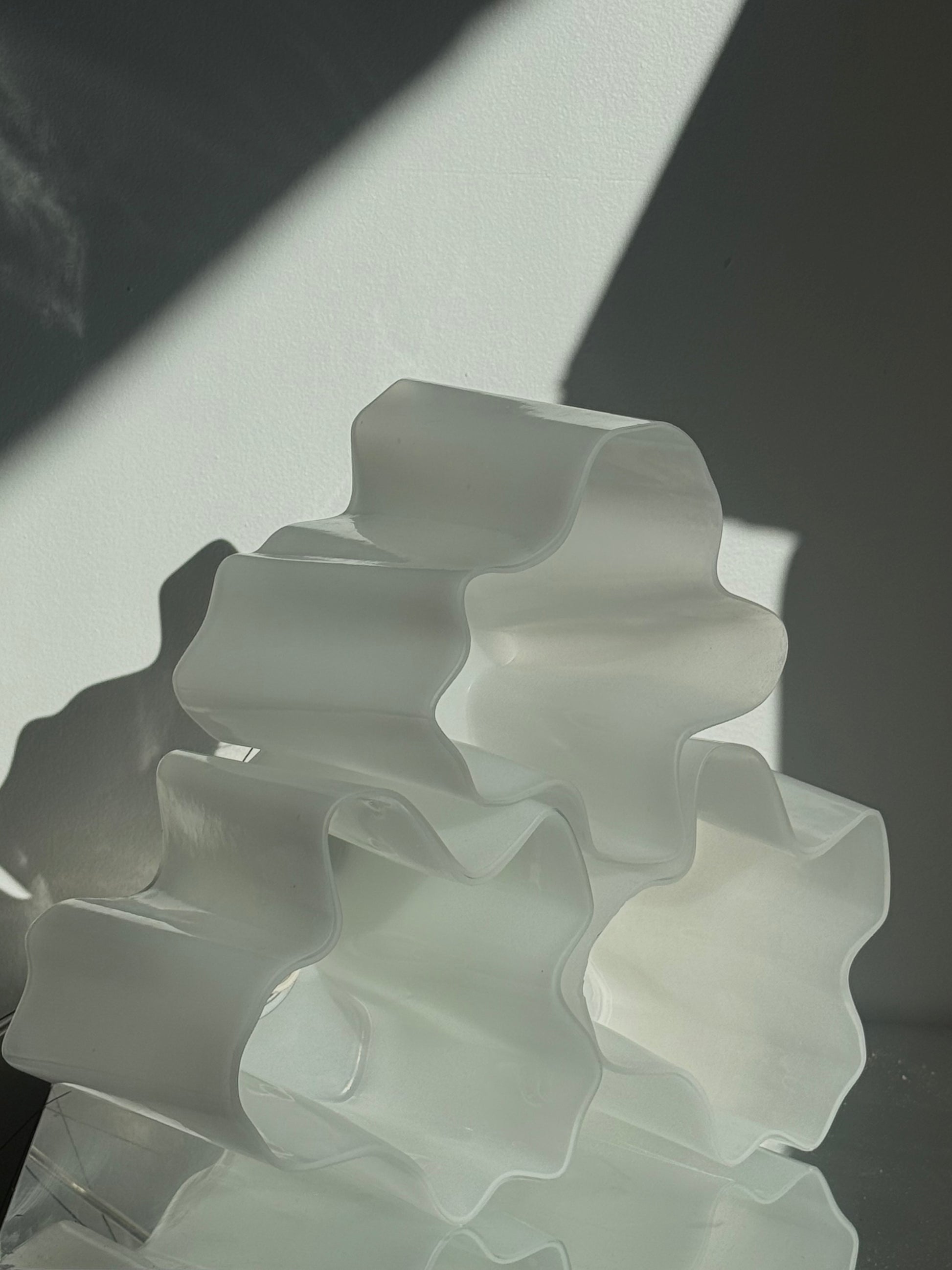 2010 Authentic Artemide Triple Nested pendant light featuring three hand-blown Venetian white (milky) glass diffusers in the iconic sculptural Logico form, with a matte lacquered aluminum frame. Made in Italy.