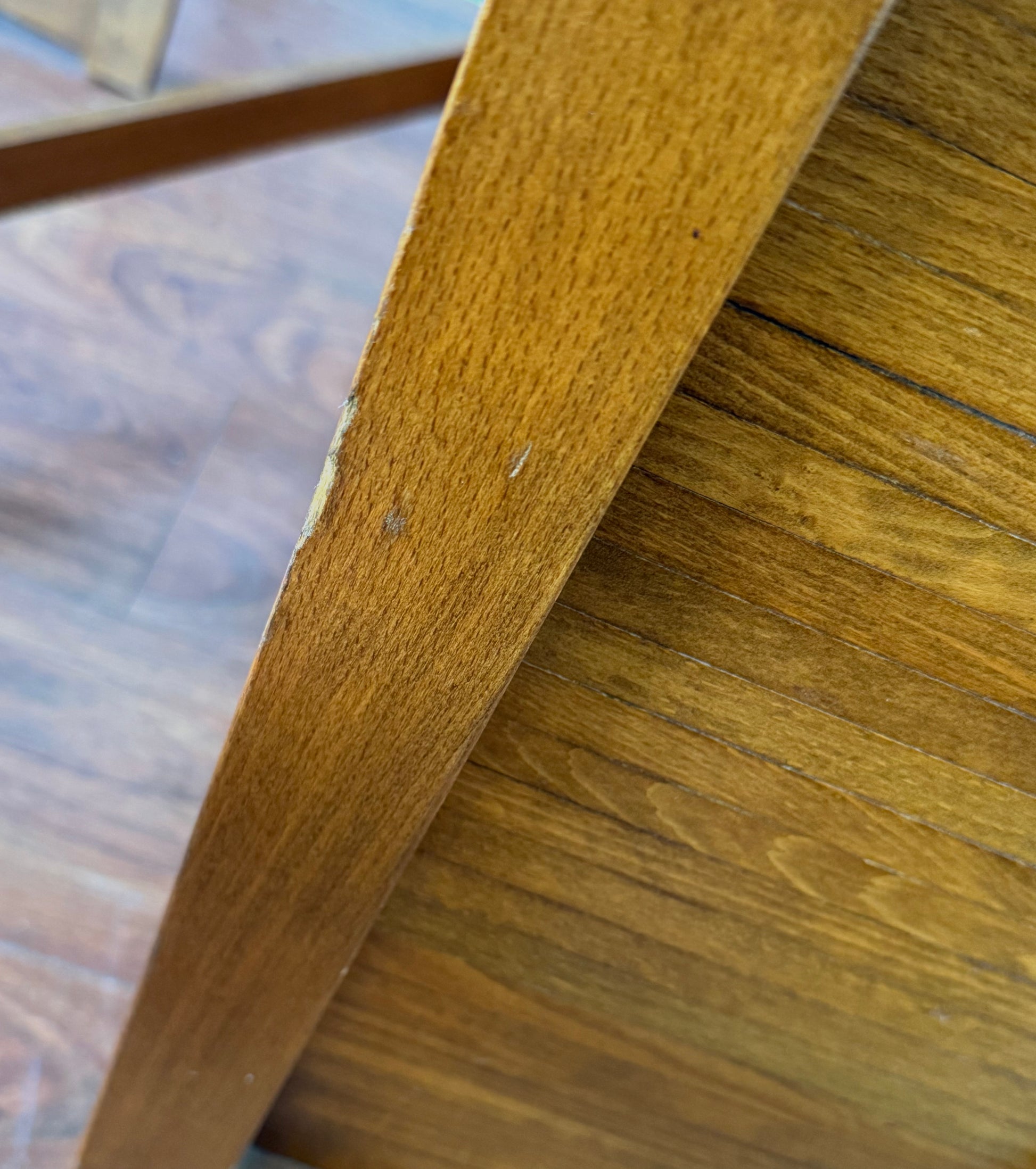 Tables are in great condition, table is Good/fair condition one leaf has a repair as shown.