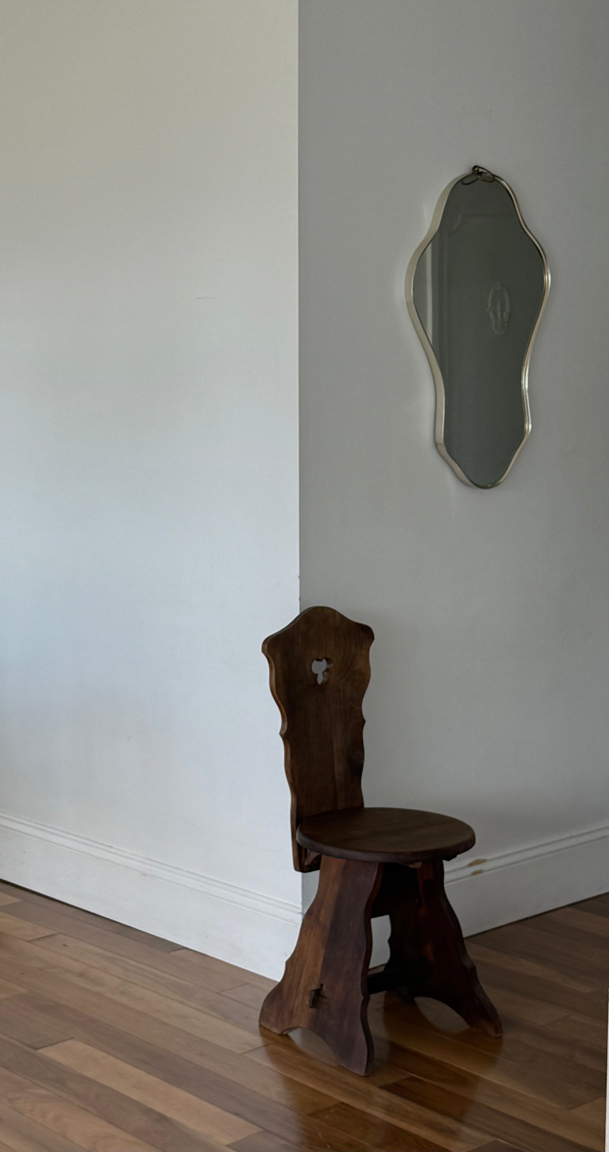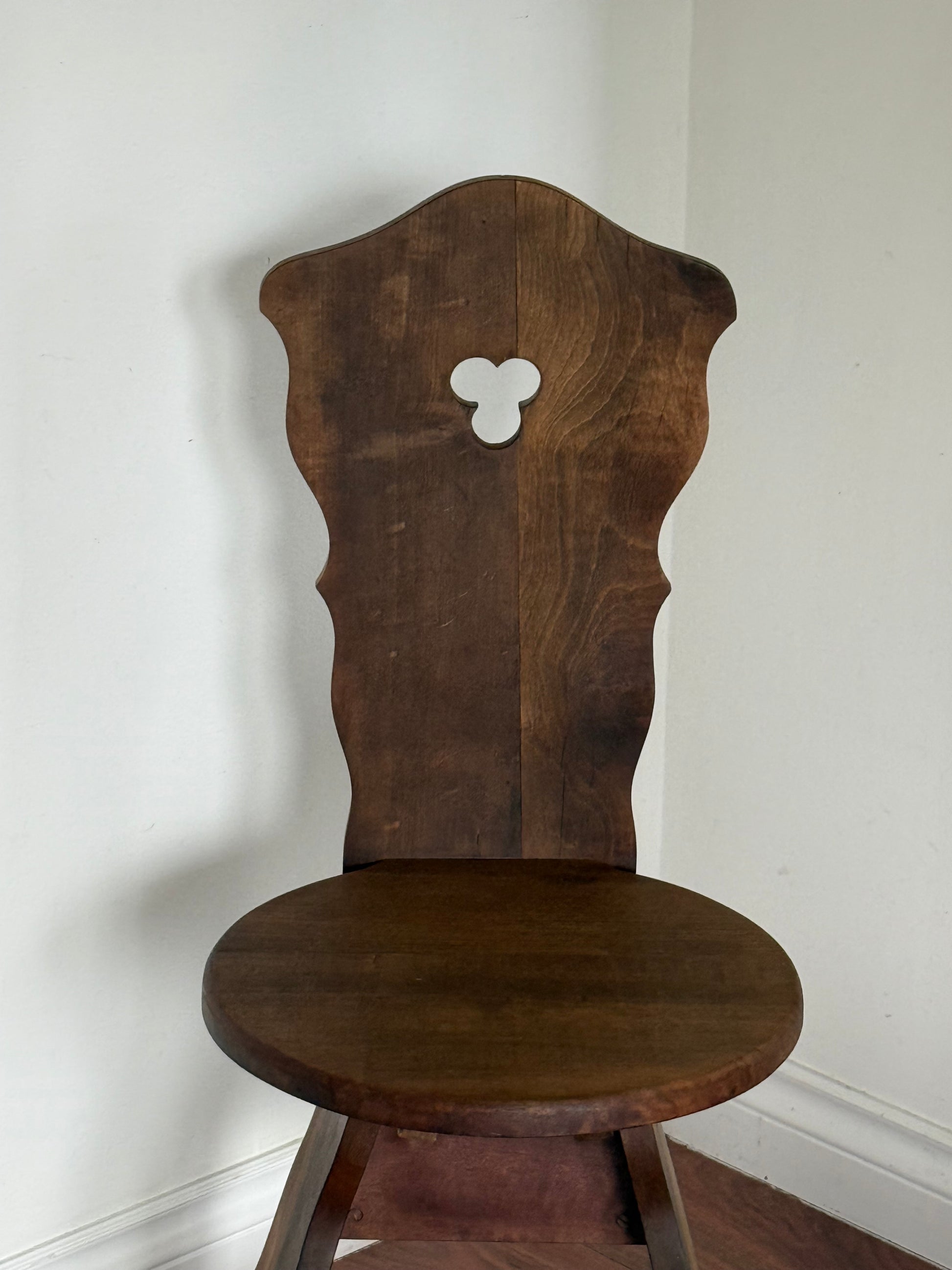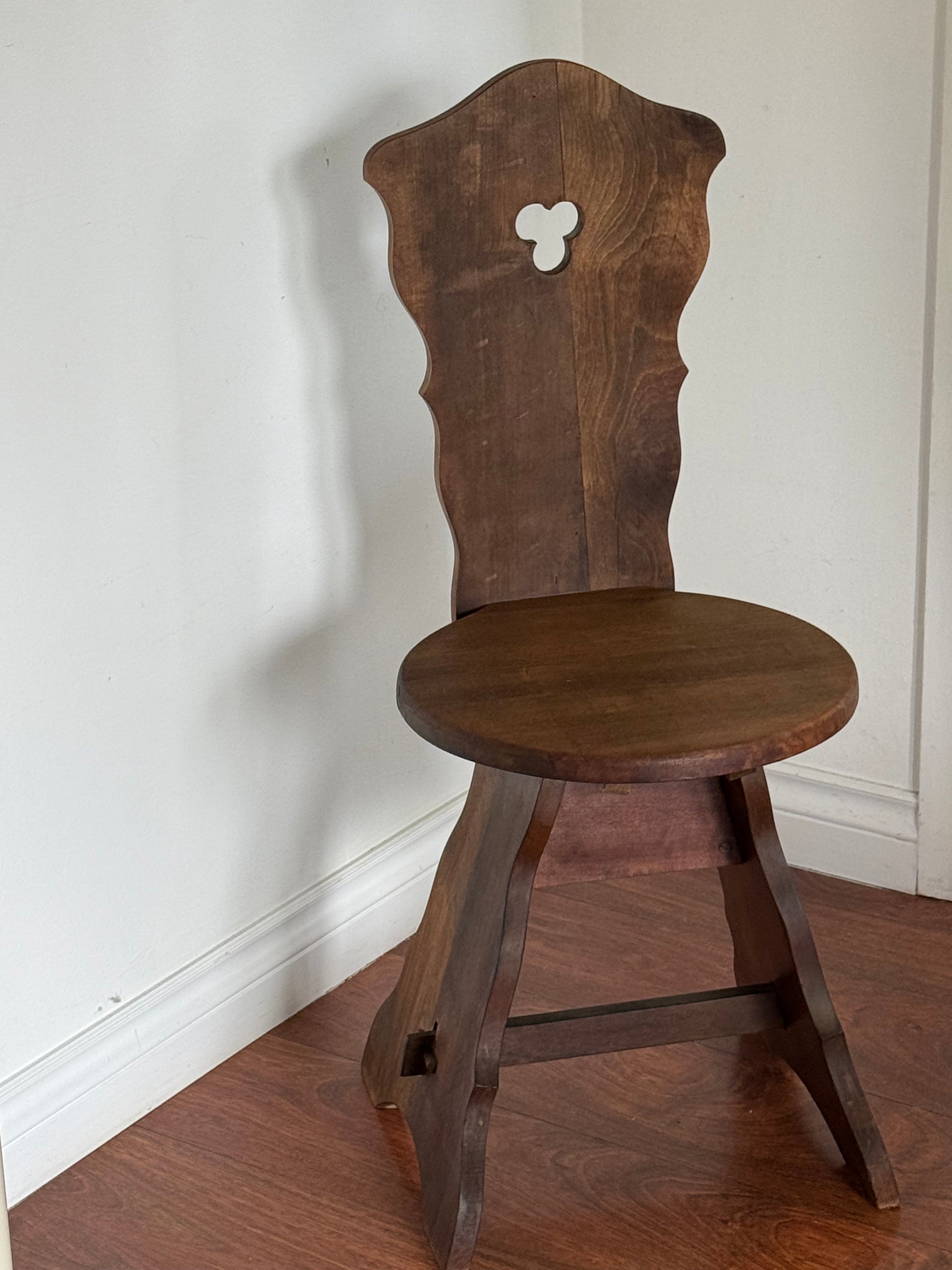 This vintage chair embodies the unique Brutalist design style, originating from regions across the Alps such as Austria, Germany, Italy, and Switzerland. The intricate and whimsical curves are a result of its remote origins and are reminiscent of designs from the early 19th century.