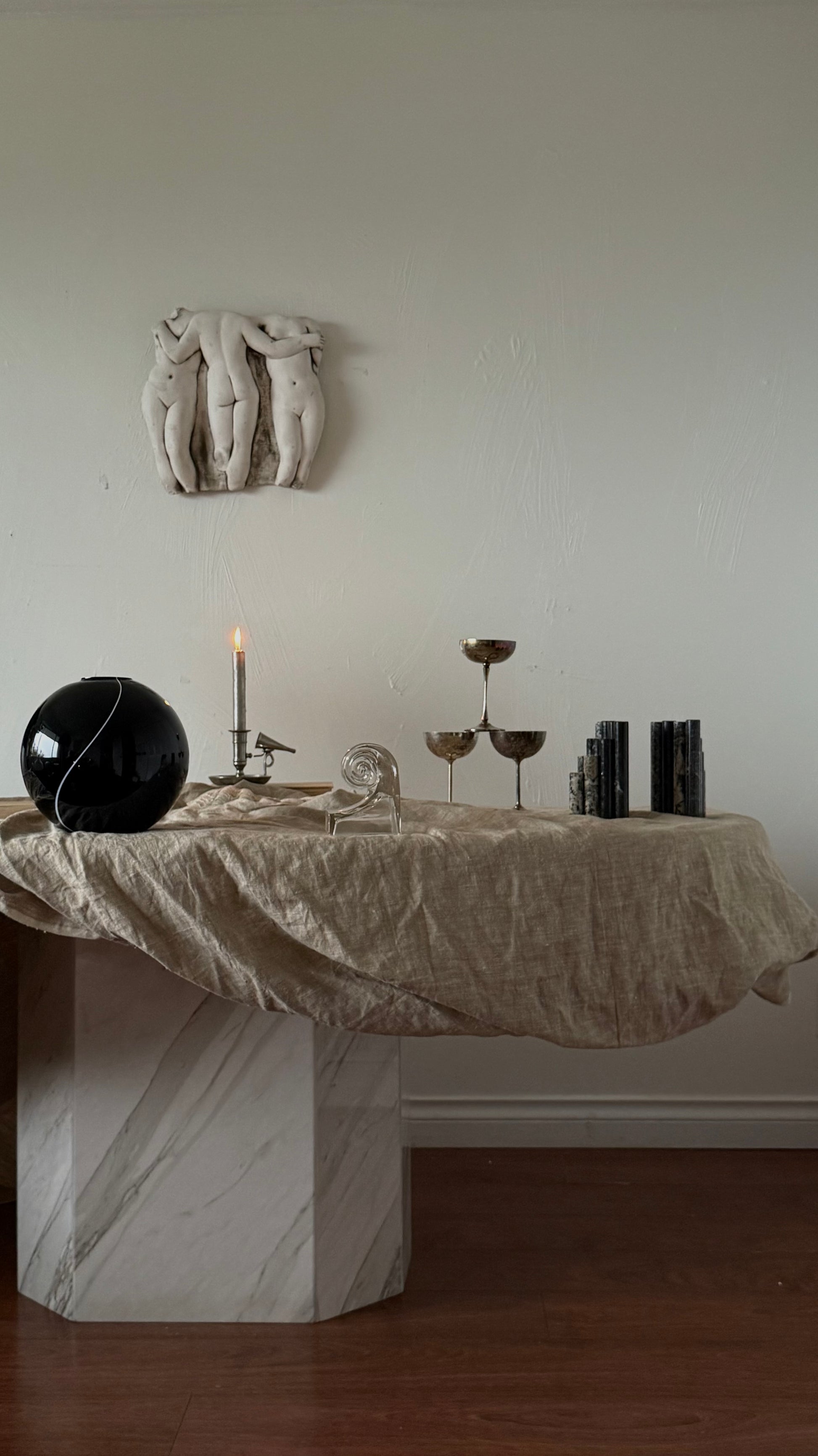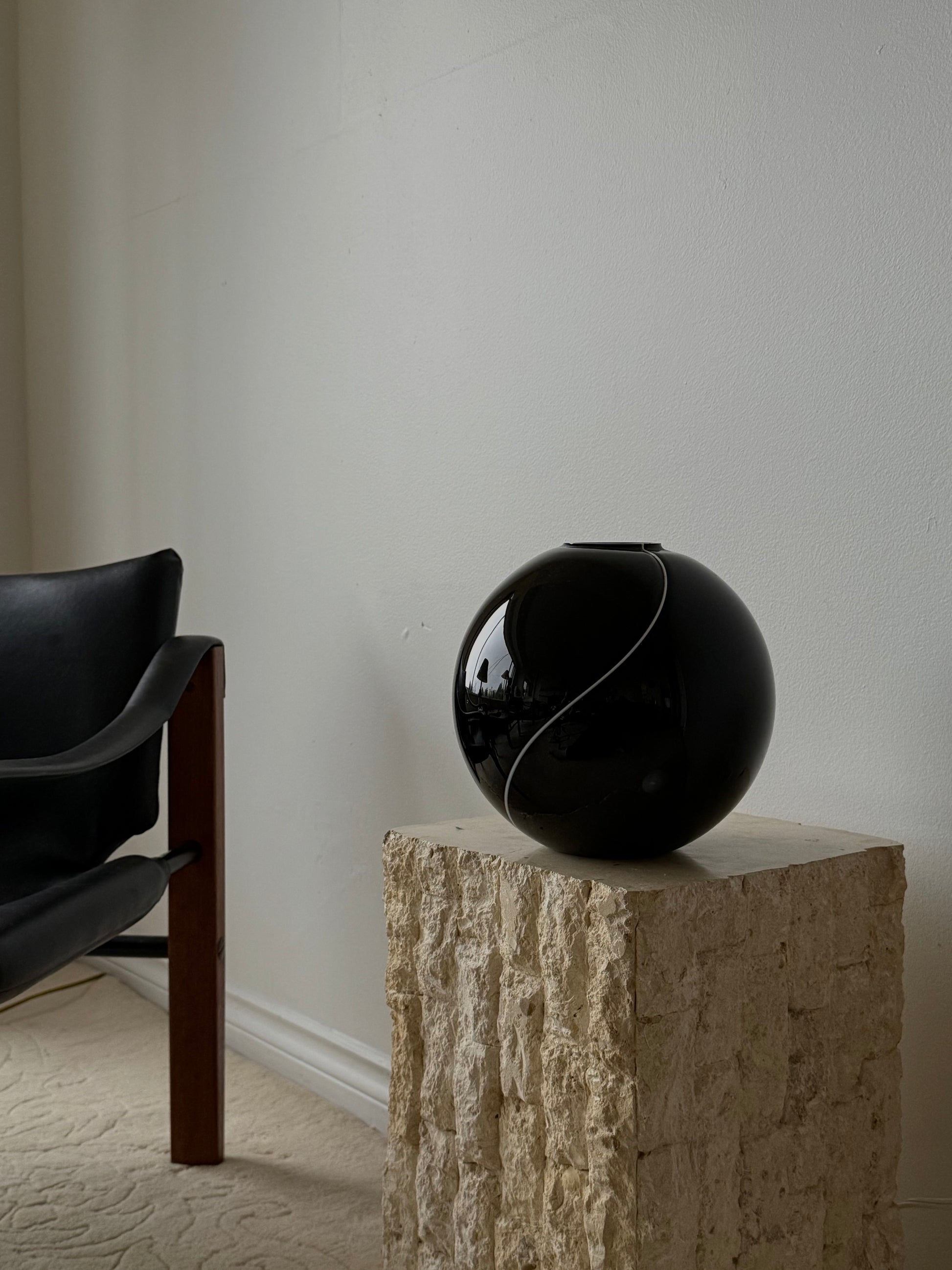 Postmodern Black Sphere Vase with white line. I am a big fan of anything that is a sphere / orb or rounded, it brings a playful touch to a space.