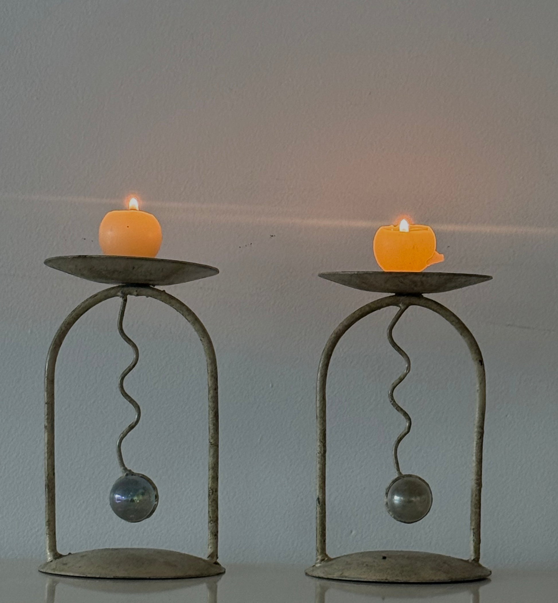 We love this set of unique metal candle holders, the arch, orb and squiggle is so on brand. They have blemishes which to the character of this pair. A set perfect for the Christmas holiday season.