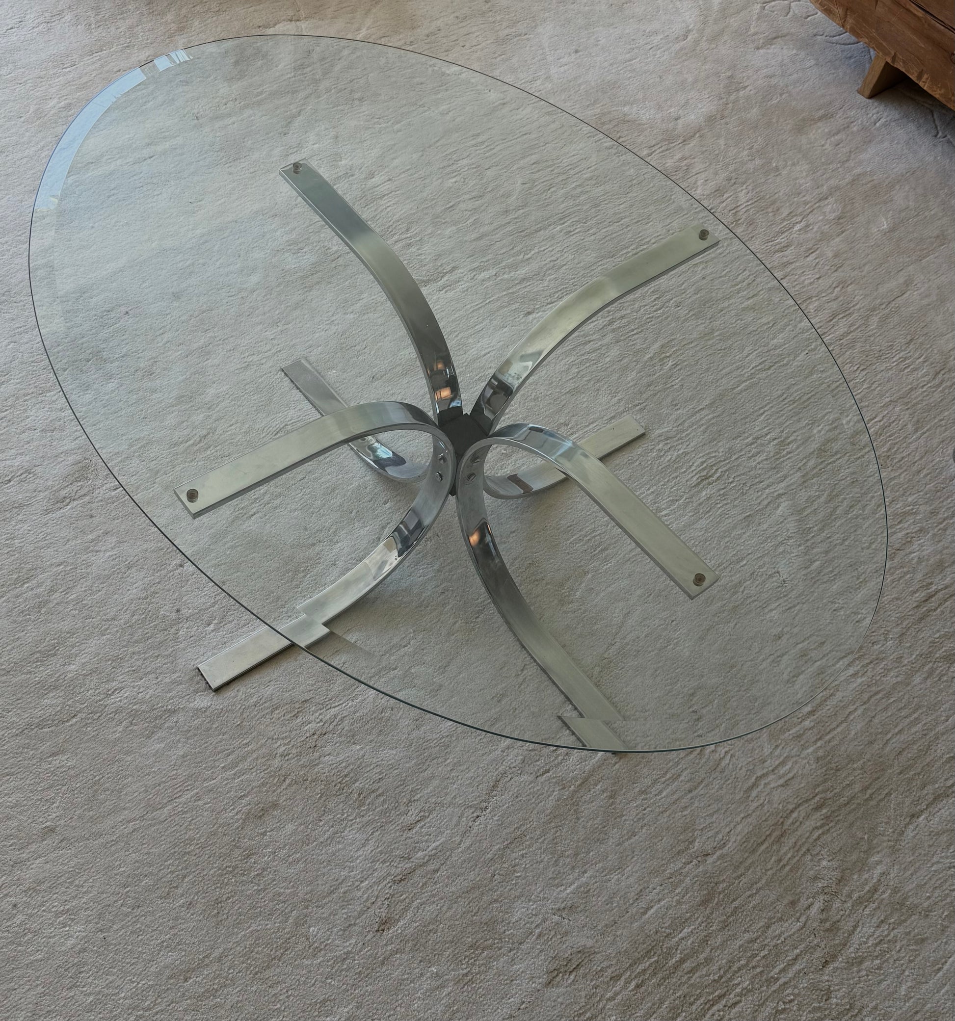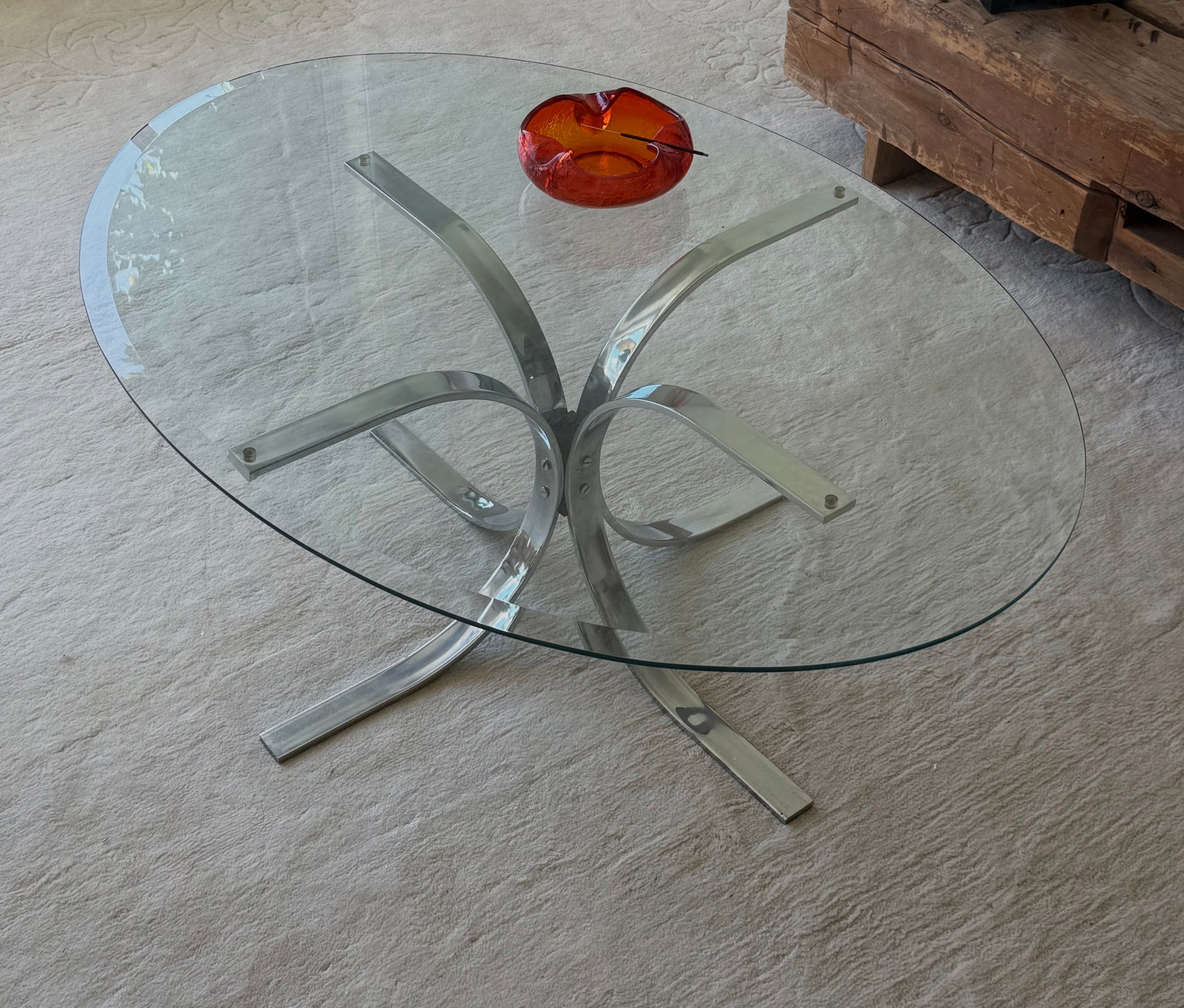 Vintage Sputnik space age chrome coffee table with an oval glass top