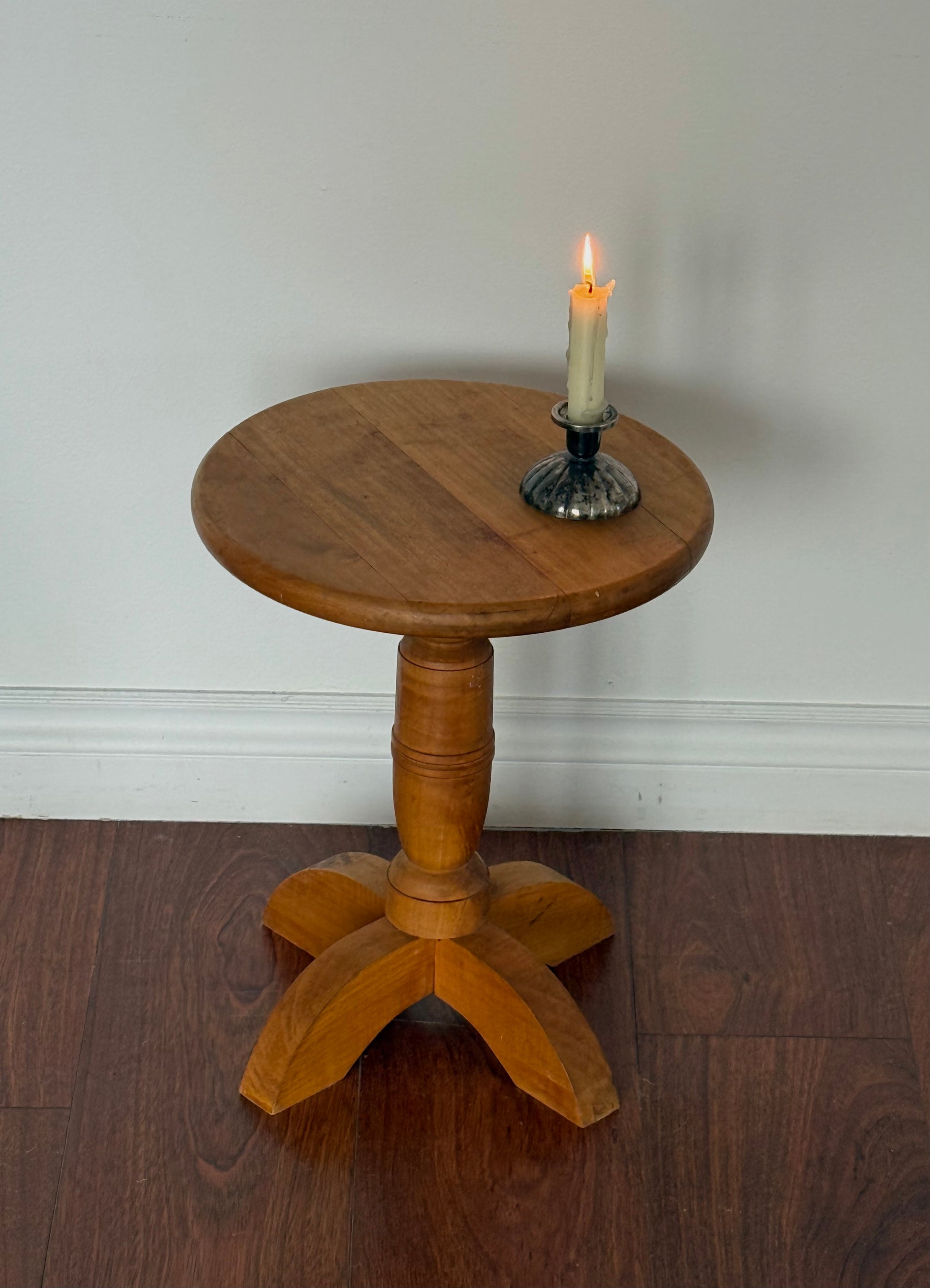 A cute vintage solid wood side table, love the simple chunky design, perfect for a side table beside a bed and or sofa.