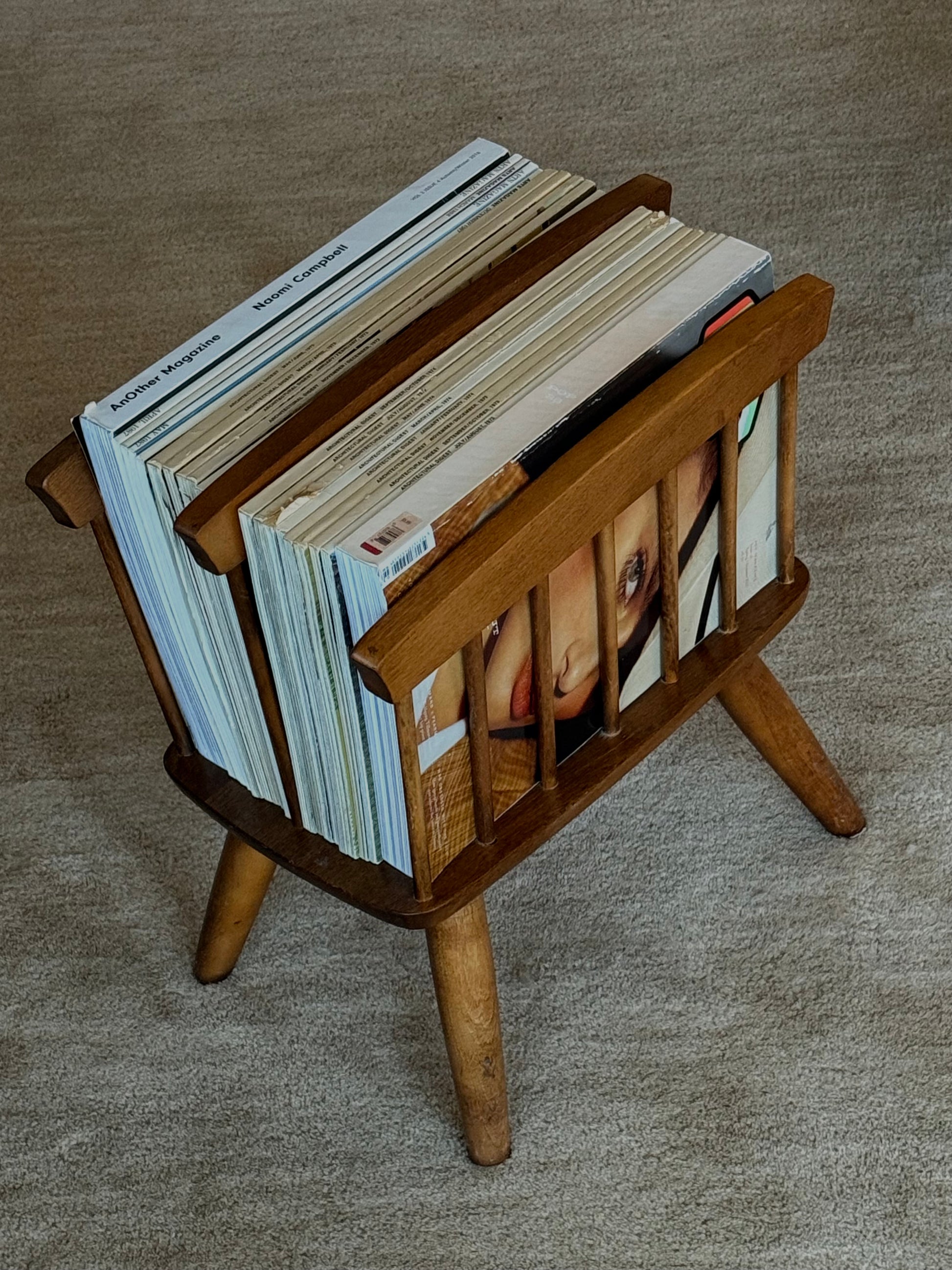 A rare vintage spindle style wooden magazine holdeR in great vintage condition.